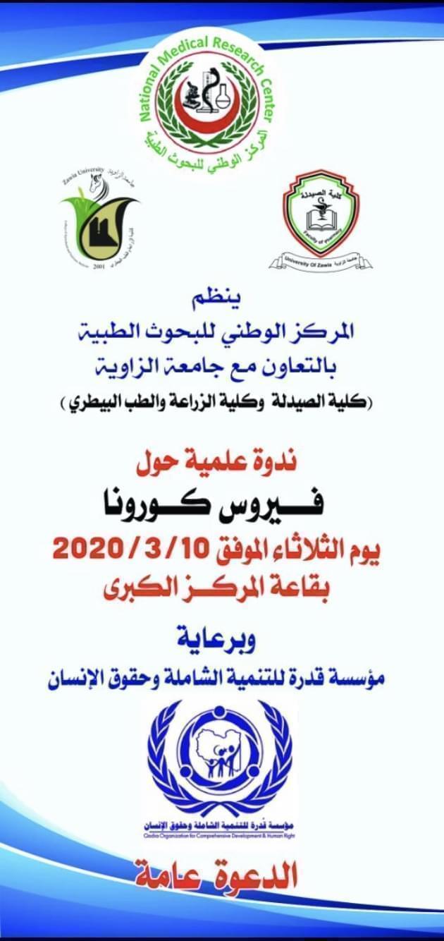 تعلن كلية الصيدلة جامعة الزاوية لطلابها الأعزاء أنه قد تقرر إستئناف الدراسة بالكلية إعتبارا من يوم الثلاثاء الموافق 2019/11/19 م وفقاللجدول الآتي :-