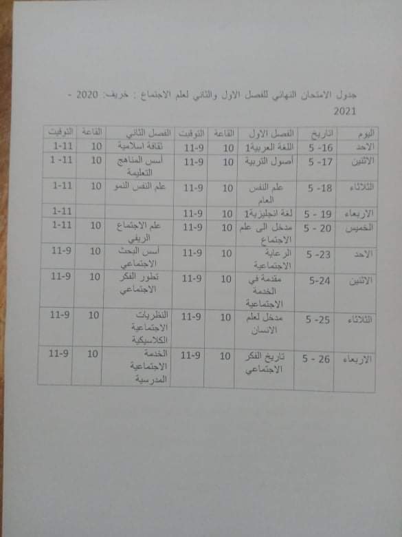 جدول امتحانات خريف 2021/2020 جدول امتحانات خريف 2021/2020