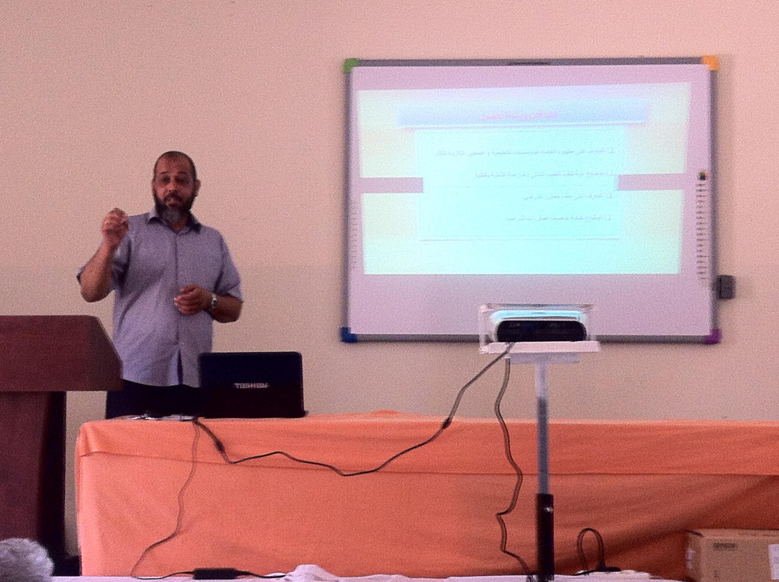وحث المتحدث بالورشة على متابعة هذا الملف والعمل خلال المدة القادمة على الحصول على الاعتماد المؤسسي للكلية .